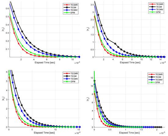 Example 1, top left: ; top right: , bottom left: , bottom right: .