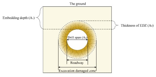 After the excavation of roadway, the initial stress in the surrounding rock mass is redistributed. When the stress is greater than the strength of the surrounding rock, the rock mass will be damaged. Then, a ringlike broken zone can be formed around the excavated space; this is called the excavation damaged zone (EDZ) [1,2]. The thickness of the EDZ can not only be used to judge the stability of the roadway, but can also be adopted in the support design [3,4,5]. In addition, due to the weakening in the rock strength, an EDZ can also be utilized for nonexplosive continuous mining in deep hard-rock mines [6]. Therefore, predicting the thickness of the EDZ around a roadway is significant.
