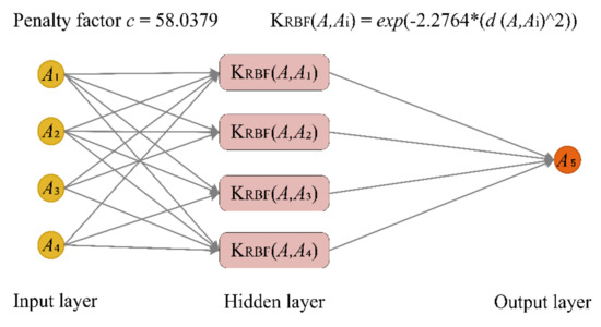 An SVR model mainly includes two steps. First, the nonlinear data is mapped into a high-dimensional space through the kernel function to make the data linearly separable. Then, the data is processed based on the principle of structural risk minimization.