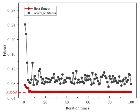 Two important parameters in the SVR model include the penalty parameter and the kernel function parameter . Among them, represents the error tolerance and indicates the learning ability. The higher the value of , the smaller the tolerance to error, and the more likely to overfit. In addition, affects the prediction accuracy directly. Therefore, it is necessary to determine the optimal and during the training process.