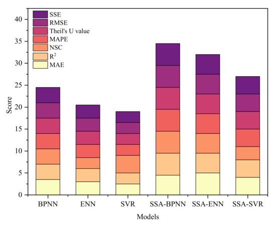 In order to evaluate model performance, seven indexes, including MAE, R2, NSC, MAPE, Theil’s U value, RMSE, and SSE, were adopted.