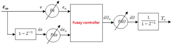 The fuzzy control system is an intelligent system that is based on fuzzy logic. It is a mathematical system that examines the inputin terms of logical variables taken on continuous values, which are between 0 and 1. Error = − and error variation = − are then considered as fuzzy input variables of the fuzzy controller, whose fuzzy output will generate the variation of the controlled speed = −. Figure 3 illustrates the structure of the speed loop fuzzy controller.