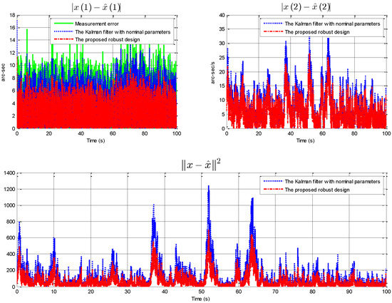 - Zhou, T. Sensitivity penalization based robust state estimation for uncertain linearsystems. IEEE Trans. Autom. Control 2010, 55, 1018–1024. [Google Scholar] [CrossRef]