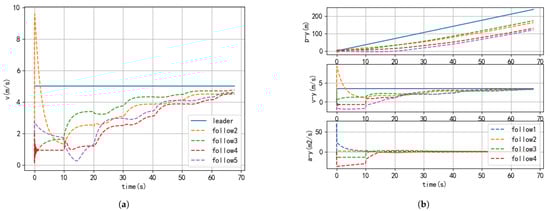(a) State in x-direction (HOAUVs with time delay); (b) state in y-direction (HOAUVs with time delay).