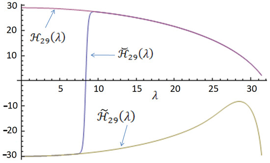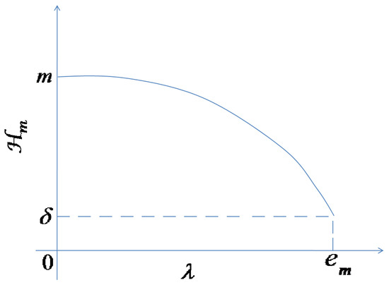 This function takes the value m at , as a simple asymptotic analysis reveals. In addition, it decreases until the first root, while positivity above a lower bound level is guaranteed when , where the values are uniquely determined due the monotonicity of (see Figure 2). It is noticeable that the sequence increases (), while their specific values are very useful in the numerical treatment of the problem, as will be clarified in forthcoming sections.