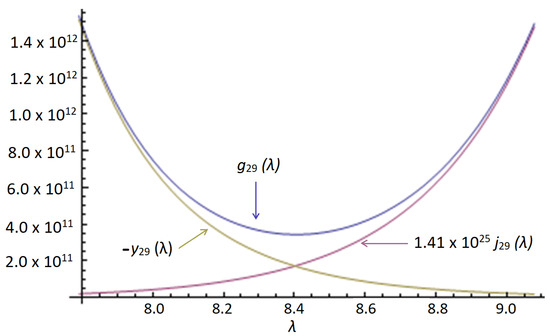 So far we have selected the height of the cone L equal to . In fact, the parameter defines a range of radial distance, inside which the crucial part of the driving term remains strictly positive. In addition, inside the interval , the spherical Legendre functions are permanently opposite and free of zeros. Actually the same situation holds for the pair of the Bessel functions of order since as mentioned above the sequence increases. Substituting then again and solving the algebraic Systems (39) and (40), we find the unique solution