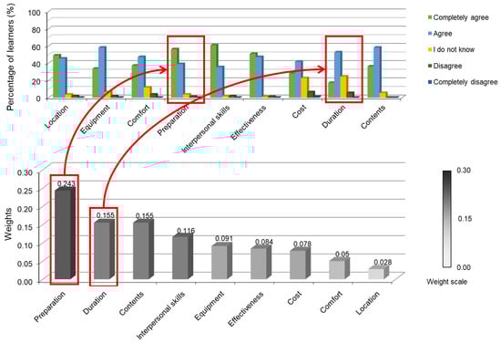 Finally, “organization” is the criterion that includes the general aspects that characterize the entire training process, which can be better defined through the following sub-criteria: