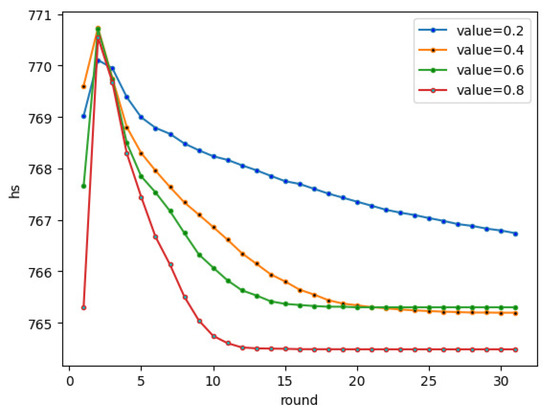 In this experiment, we discuss the influence of different on the structural balance weighted signed network. The ratio of is 0.2, the ratio of is 0.5, and the ratio of is 0.3. Meanwhile, the proportion of positive opinions is 0.7, the rest is negative. Moreover, convergence parameter . The same values are set for , and , i.e., .