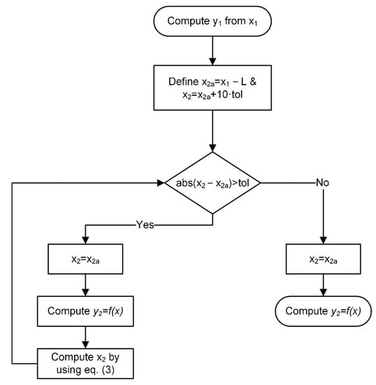 This system of equations is solved by iteration, as the ground function can be any type of function, even not analytical. The flowchart describing the iteration process is shown in Figure 1.