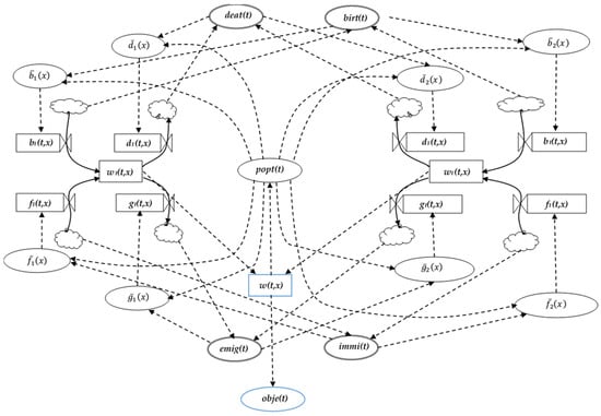 Equations (8)–(10) have been represented in a Forrester’s Diagram [12], given in Figure 2.