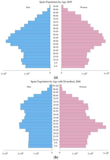 Figure 7 shows the change in the population pyramid for the case of Spain in the year 2040.