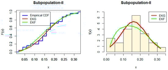 Estimated CDF and PDF for EKG and EKF distribution for Subpopulation II.
