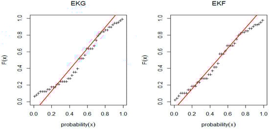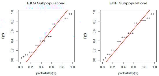 PP-plot for EKG and EKF distribution for Subpopulation I.