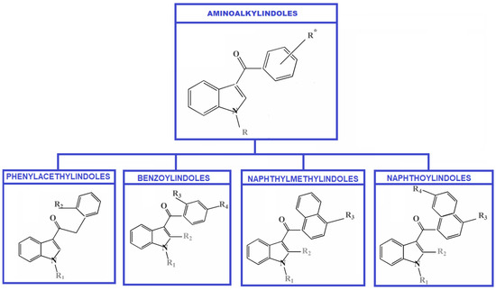 Classification of Aminoalkylindoles—four subgroups.