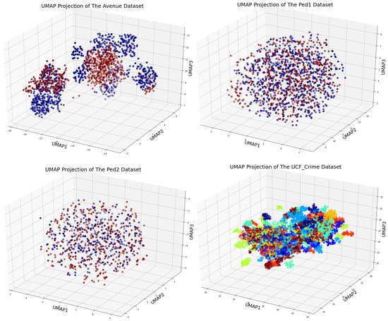 UMap data visualization of UCSD, CUHK, and UCF Crime datasets.