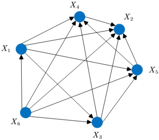 To better explain the full attraction model of the standard FA, let us use a simple minimization problem to make an instruction. Suppose there are six individuals in the firefly population, . The objective function values of these individuals are respectively , , , , , and . According to the objective function value, the fireflies can be sorted as: , , , , , and . Figure 1 shows the full attraction mechanism of the standard FA. As seen, the individual moves towards , , , and . moves towards , , and . is only attracted by . is attracted by and . Among them, and are the best and worst individuals in the population, respectively. All firefly individuals are attracted by , and moves towards the remaining individuals in the population. The mechanism of attracting each other is called the full attraction model. Obviously, too many attractions make the algorithm higher computational complexity, and easily lead to search oscillations, thereby reducing the solution accuracy.