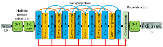 - Haris, M.; Shakhnarovich, G.; Ukita, N. Deep back-projection networks for super-resolution. In Proceedings of the IEEE Conference on Computer Vision and Pattern Recognition, Salt Lake City, UT, USA, 18–22 June 2018; pp. 1664–1673. [Google Scholar]