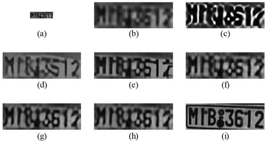- Zhang, M.; Liu, W.; Ma, H. Joint license plate super-resolution and recognition in one multi-task Gan framework. In Proceedings of the International Conference on Acoustics, Speech, and Signal Processing, Calgary, AB, Canada, 15–20 April 2018; pp. 1443–1447. [Google Scholar]
