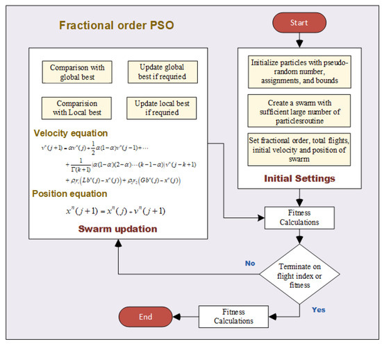 A heuristic computing strategy represented with fractional order particle swarm optimization (FOPSO) was first presented by Machado with a team of researchers by introducing the fractional order velocity in the standard PSO [40]. Since its introduction, the FOPSO has been extensively used by the research community for various optimization tasks with performance better than that in integer counterparts [41,42,43,44]