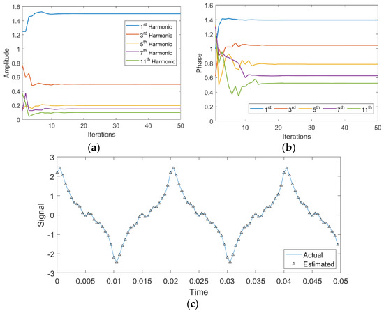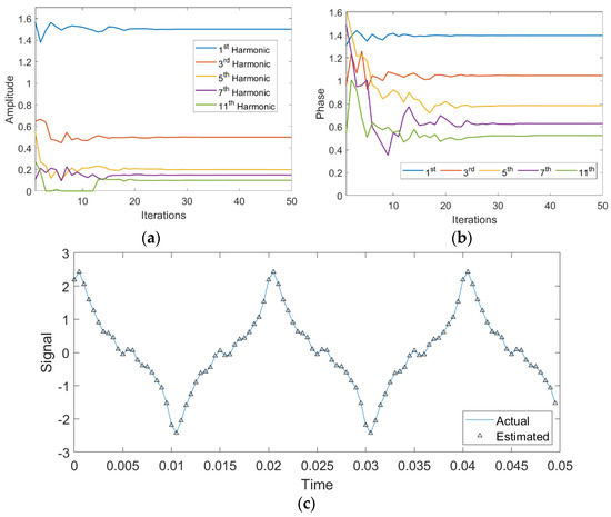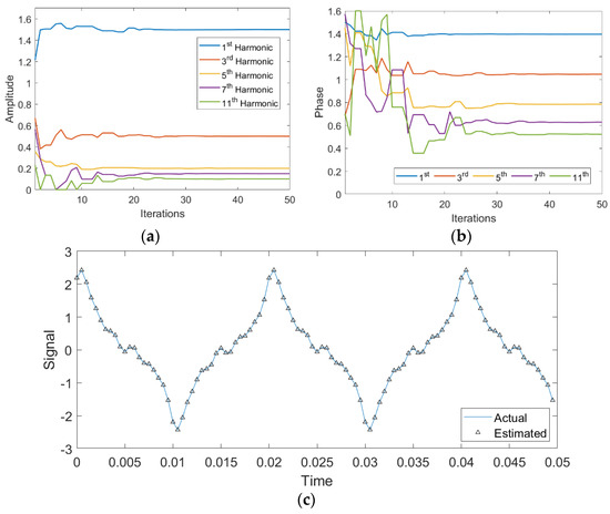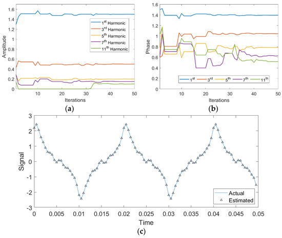 Parameter estimation is an essential or fundamental step in solving various engineering and applied sciences problems [1,2,3,4] including monitoring power quality and assessing reliability in electrical systems [5]. Parameter estimation of electrical harmonics is required to compensate or mitigate their adverse effects in electrical systems that may lead to reduced lifetime of complex/sensitive equipment due to circuit breaker failure, enhanced core losses in electrical devices/components, instrumentation malfunctioning and excessive heat generation [6,7,8]. Researchers have proposed various local/global search parameter estimation methods to address the power systems harmonics issue. For instance, Singh et al. presented a Kalman filtering approach [9], Joorabian et al. proposed a novel method by hybridizing least squares with Adaline [10], Enayati et al. designed a hybrid algorithm integrating recursive least squares with an iterated Kalman filter [11], Sarkar et al. introduced a self-organized ADALINE mechanism [12], Liu et al. presented a hierarchical iterative estimation approach [13], and Xu et al. proposed various modifications in least squares and gradient descent algorithms in [14,15], and references cited therein, for the parameter estimation of power signals.