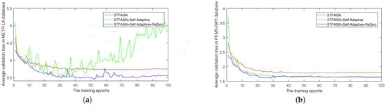 Comparison of the average validation loss of five results in STFAGN with different configurations in (a) METR-LA and (b) PEMS-BAY.