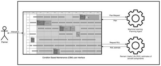 In the context of the development of a prototype planning tool in a new aircraft maintenance CBM paradigm, we studied how the decision support tool should be designed to (1) give the user a reading and understanding of the indicators of prognostic aircraft components/systems obtained by external systems and stored in Database and (2) to integrate the reinforcement learning (RL) agent to human collaboration in planning maintenance as can be seen in Figure 1.