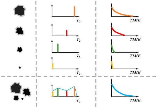 From Equation (2), there is a proportional relationship between the T2 value and porosity, as shown in Figure 1. The larger the value of T2, the larger the corresponding pore radius. The pore structure of porous media can be quantitatively characterized by the T2 spectrum [22,23,24].
