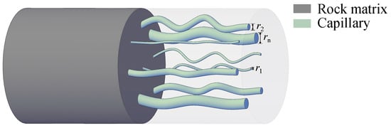 Permeability reflects the capacity of a rock to allow fluid to pass; the connected pores are the prerequisite for seepage. qi is the flow rate of the capillary with radius ri by the Hagen–Poiseulle equation [25]: