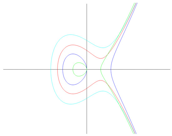 For each partition, we define its inverse as an elliptic curve from which points that have cryptographic properties in the sense of defining the credentials needed in the process of computing the keys involved in double authentication can be selected. To build this credential system, two constants, and , as well as a periodic function defined over a set of real numbers, are selected. In the case considered in the current study, the Weierstrass equation for each -partition is given by the following formula:
