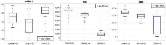 These metrics can be divided into two groups: One group consists of performance indicators that evaluate the error rate of models (i.e., NRMSE and SSE). The second group includes those that are assessed based on the numbers of parameters of the individual models (i.e., AIC and SBC).