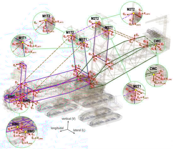 - Gnjatović, N.; Bošnjak, S.; Zrnić, N. Spatial reduced dynamic model of a bucket wheel excavator with two masts. In Proceedings of the 14th International Scientific Conference: Computer Aided Engineering (CAE 2018); Lecture Notes in Mechanical Engineering; Rusiński, E., Pietrusiak, D., Eds.; Springer: Cham, Switzerland, 2019; pp. 215–235. [Google Scholar] [CrossRef]