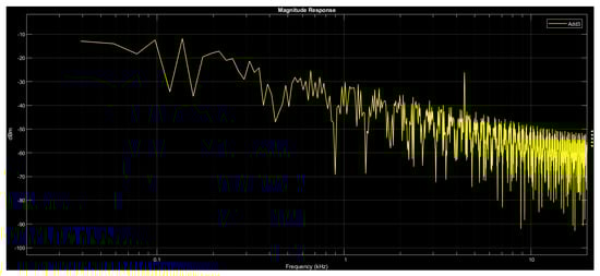 Further, the biological signals are the ones with minimal amplitudes and lower frequencies (a few brain signals range from 1–4 Hz). The entire requirement of error-free signal generation shall be attributed to the proper controllability of the modelled system obtained through the solution. The signal processing unit is implemented through a block diagram as depicted in Figure 1 using MATLAB-Simulink software with the aid of the proposed system of Equations (1) and (2) that shall be suitable for a few biomedical applications. The magnitude response of the digital filter implemented using a fractional differentiation model, as shown in Figure 2, exhibits a sharp cut-off frequency with better signal-restoration capability [50,51]. Therefore, the output is obtained, which is bounded and controllable with better stability in the amplitude in the low-frequency corner.