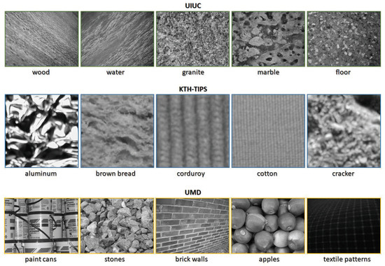 Publicly available datasets were analyzed in this study. UIUC data description can be found in [30], and data can be found here: (http://www.cvr.ai.uiuc.edu/ponce_grp, accessed on 1 September 2016). KTH-TIPS data description can be found in [31], and data can be found here: (https://www.csc.kth.se/cvap/databases/kth-tips, accessed on 1 October 2022). UMD data description can be found in [32], and data can be found here: (http://users.umiacs.umd.edu/~fer/website-texture/texture.htm, accessed on 3 December 2022).