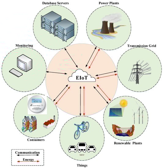 The Energy Internet of Things enables the development of new complex communication infrastructures for the modernization and automation of energy infrastructures for producers and manufacturers, as depicted in Figure 1. It results in greater connectivity of these safety-critical systems, allowing for more efficient management of operational processes, service provisioning, and information exchange for various (third-party) actors. EIoT enables more efficient and environmentally friendly energy production with the least amount of waste. This technology, however, raises security concerns, as evidenced by numerous recent cyberattacks on critical infrastructures and utilities [7,8]. The reason for this is that their reliance on information technology (IT) for operation and control is increasing, making them more vulnerable to malicious intent.
