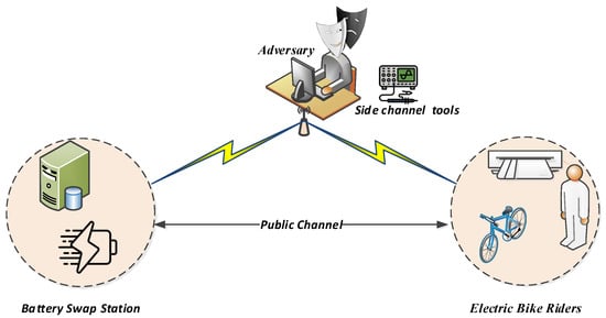 In this paper, we consider a system that includes a battery swap station (BSS), which is used to provide service to registered electric bike riders (EBR), such as battery swapping, using Figure 2. Furthermore, we assume that, with the exception of the registration phase, the remainder of the messages between EBR and BSS are sent over the public channel. Communication consists of two phases: in the first phase, EBR and BSS authenticate each other to share a secret key.