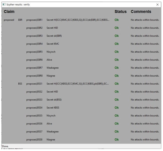 - Obviously and are accepted by and is extracted by BSS from the received . Next, it generates a random number and computes , and and sends to EBR (impersonated by the adversary).