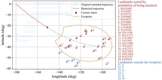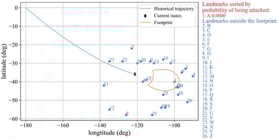 Although landmarks outside the footprint can be excluded according to Section 3.3, there are many landmarks remaining in the footprint and we cannot judge which one is the attack target. During the flight of HGVs, as long as the landmarks still stay in the footprint, they can be attacked by proactive maneuvers of the vehicle. Using only the flight state at the current moment, the attack intention cannot be inferred. How to combine the current footprint prediction with the historical flight data is the key point of this section.