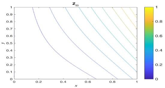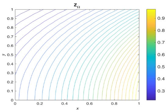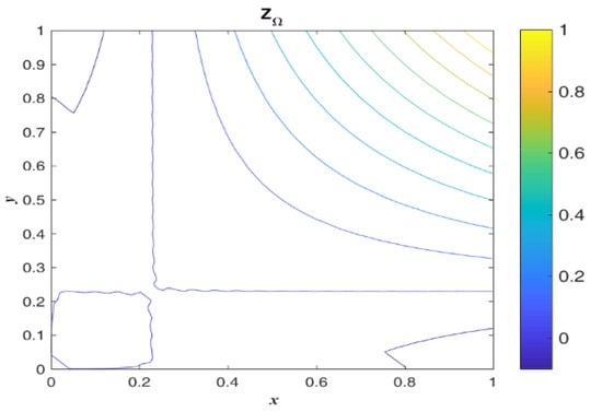 The domain is given by . The parameters used are as follows: and For convenience’s sake, the index, such as or , is indicated on the BCs. According to the BCs on is known, the contour of is shown in Figure 15, and can be obtained as follows: