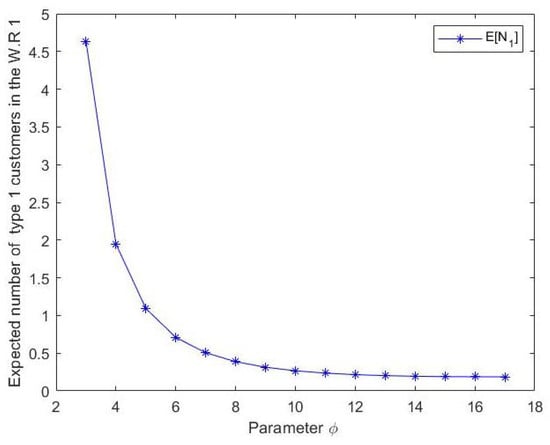 - From Figure 8, we can notice that the expected number of type 1 customers in the waiting room 1 decreases as increases.