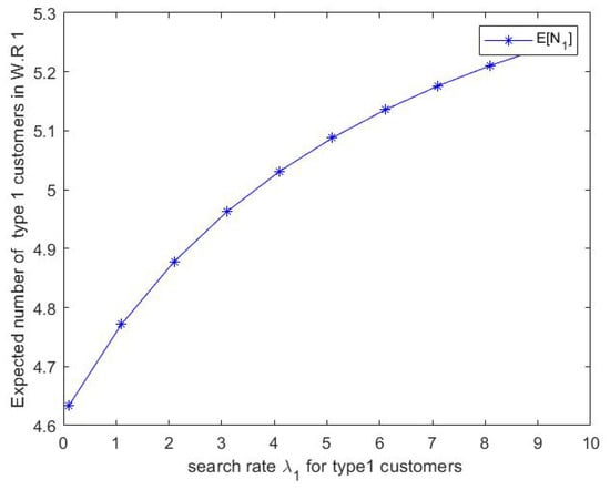 - From Figure 5, we can notice that the expected number of type 1 customers in waiting room 1 increases as increases.