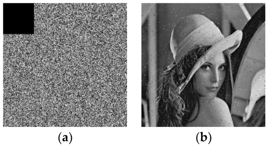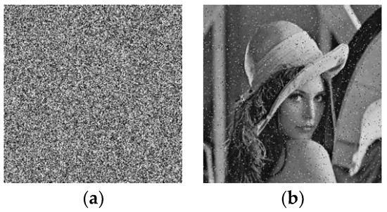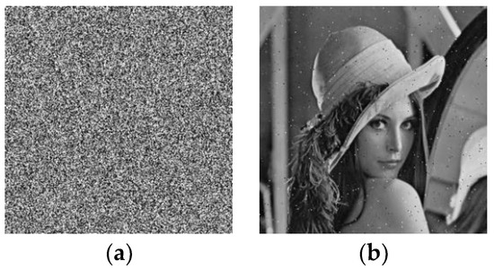 Salt and pepper noise intensity of 5%: (a) encrypted image and (b) decrypted image.