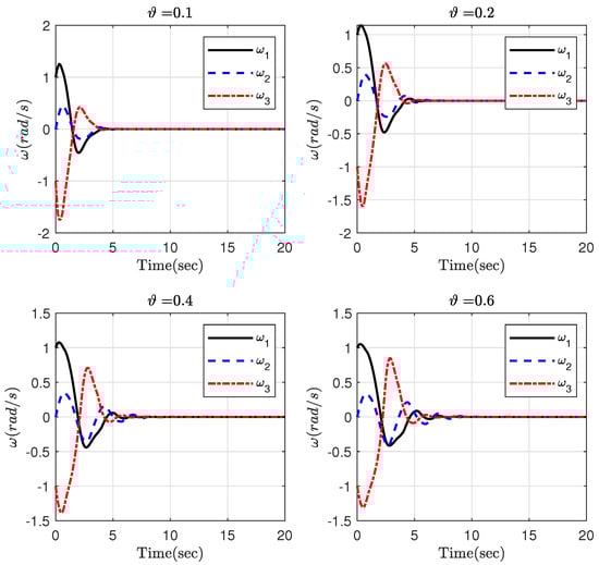 Time responses of the rotation velocity in Part 2 for different .