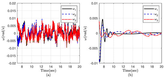 The attitude in Part 3: (a) noisy measurement, (b) high-frequency disturbance.