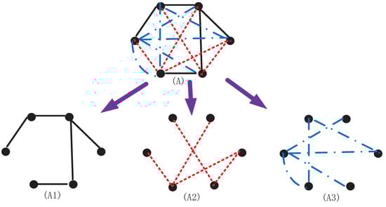 The schematic diagram of the logistic network: (A) complete logistic network; (A1) highway network; (A2) railway network; (A3) air network.
