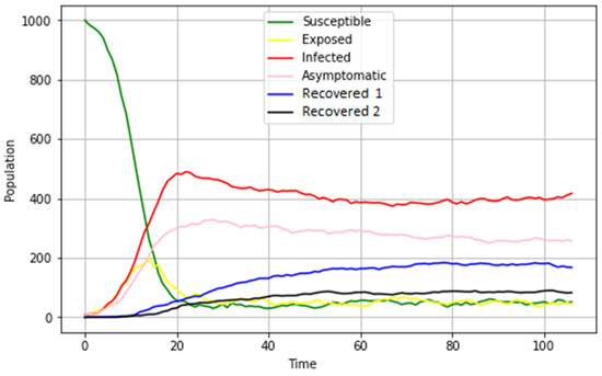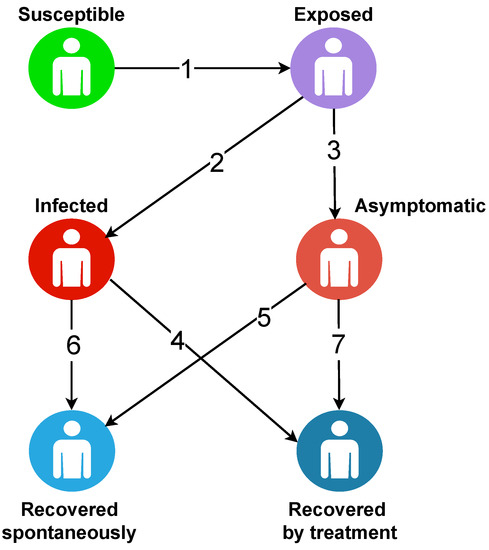 Illustration of the progression of the infected individuals according to the .