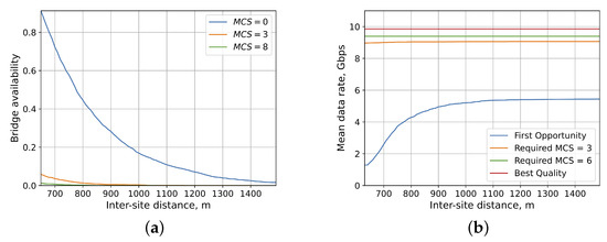 Bridge availability and data rate. (a) different MCSs; (b) different last hop selection strategies.