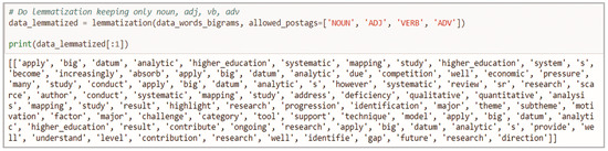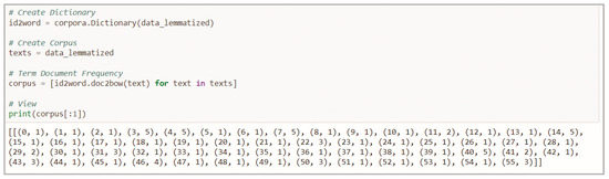 The second methodological stage focused on methodologically applying two deep learning techniques using a Python library for natural language processing, and therefore, applying deep learning techniques for the extraction of textual aspects of scientific development capable of recognizing and generating main themes with accurate prediction—in this case, a technique called latent Dirichlet allocation (LDA). Effectively, the topic modeling involves extracting the characteristics of terms contained in research documents. Mathematical structures and context such as matrix factorization and singular value decomposition (SVD) are used, which leads to discovering some of the same type of information as the decomposition itself. This is achieved by generating a group or groups of terms that are differentiated from each other; groups of words form themes or concepts. Methodologically, these concepts are used to interpret the main themes of a corpus, to establish the semantic connections between words that appear frequently in many documents. There are several frameworks and algorithms for building topic models. One of these is the statistical technique of latent semantic indexing (LSI) for correlating semantically linked corpus terms. It is based on the fact that similar terms tend to be used in particular contexts. Consequently, they tend to coexist more. LSI is used to summarize text and retrieve and search for information based on the SVD technique. Another technique is LDA. LDA is a generative probabilistic model for discrete data collections such as text corpora. It is a three-level hierarchical Bayesian model in which each element of a collection is modeled as a finite mixture over an underlying set of topics. In turn, each theme is modeled as an infinite mixture over an underlying set of thematic probabilities. In the context of text modeling, topic probabilities provide an explicit representation of a document [31]. In the task of modeling a document, LDA does better than LSI and a mixture of unigram models. The LSI over-adjusts the probabilities of document modeling to determine the topics in a new document [31]. LDA generates less word ambiguity and a more accurate assignment of documents to topics. The LDA algorithm is easier to scale for large datasets using the MapReduce approach in a computational cluster. Therefore, to model a document, LDA is better than the LSI technique. The latter adjusts the probabilities of document modeling to determine the topics in a new document. The LDA model has proven to be a robust method that can be used to assign a class or category to an object to generate learning by creating a distinction between classes and cohesion within the same class. This study applies an LDA algorithm for topic modeling.