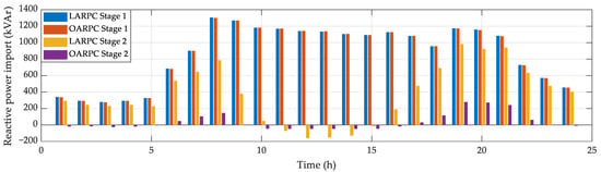 Reactive power import profile comparison for both stages of OARPC and LARPC.
