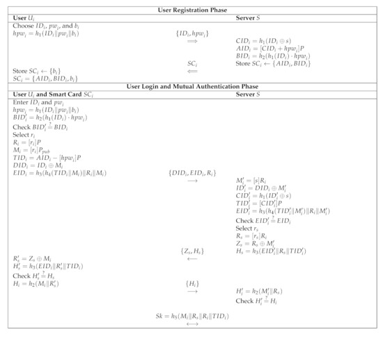 - Mehmood, Z.; Chen, G.; Li, J.; Albeshri, A. An untraceable ECC-based remote user authentication scheme. KSII Trans. Internet Inf. Syst. (TIIS) 2017, 11, 1742β1760. [Google Scholar]