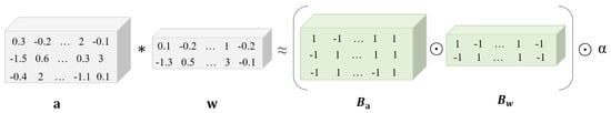 where represents the quantized binary parameter, and represents the scale factor of the binary parameter. Thus, the operation of a binary neural network can be expressed as:
